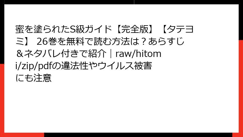 『蜜を塗られたS級ガイド【完全版】【タテヨミ】 26巻』 レビュー・口コミ・評判を徹底解説:ファンの熱い声と評価の全貌