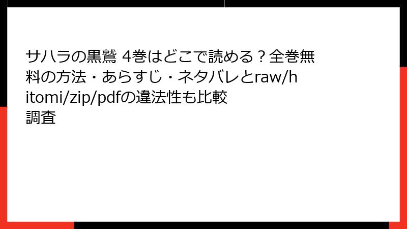 「サハラの黒鷲」を海賊版で読むことは、単なる無料の誘惑にとどまらず、漫画業界や社会全体に波及する問題を引き起こします。好きな作品を守るためにも、こうしたリスクを理解し、正しい選択をすることが大切です。