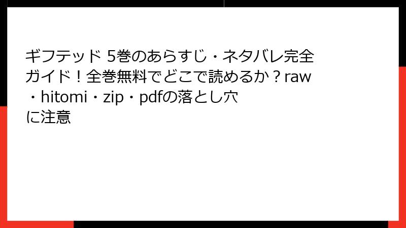 こんにちは、漫画ファンの皆さん! 『ギフテッド』は、天樹征丸原作・雨宮理真作画によるスリリングなミステリー漫画で、天才警察官と超常能力を持つ高校生のバディが織りなす物語が魅力ですよね。しかし、raw、hitomi、zip、pdf、漫画バンクなどの海賊版サイトでこの作品を読むことには、重大なリスクが潜んでいます。この記事では、海賊版サイトを利用する危険性を、法律、倫理、セキュリティ、品質の観点から詳しく解説します。ブログ形式で、読み応えのある内容を