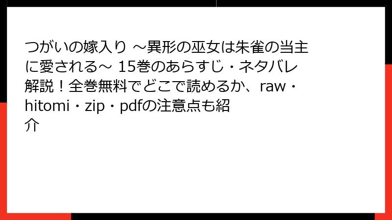 raw、hitomi、漫画バンクなどの海賊版サイトは、法的罰則、ウイルス感染、金銭被害、倫理的ジレンマの塊。無料の裏に潜む闇は深く、一度のアクセスが人生を狂わせる可能性もあります。『つがいの嫁入り』15巻のような名作は、正規で読むことでさらに輝きます。皆さんも、今日から合法派にシフトを! 被害経験談やおすすめアプリのコメント、待ってます。安全第一で、漫画ライフを楽しんでくださいね。