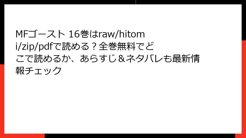 こんにちは、漫画好きの皆さん! 近未来の公道レースが熱い『MFゴースト』、しげの秀一先生の傑作ですよね。自動運転時代に蘇るガソリン車の興奮がたまらない一冊です。でも、raw、hitomi、zip、pdf、漫画バンクなどの海賊版サイトで「無料で読みたい!」と思う気持ち、わかります。実際、最新巻を待てないファンが多いのも事実。でも、待って! そんなサイトを使うのは、ただの「無料」じゃ済まない大惨事の始まりかも。今回は、MFゴーストのような人気作を海賊版で読むリスクを、法的・セキュリティ・倫理の観点から徹底的に掘り下げます。ブログ風に詳しく解説するので、読み進めて正しい読み方を再確認しましょう。ネタバレなしで、純粋に「安全第一」のお話です。