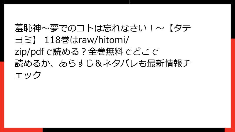 羞恥神~夢でのコトは忘れなさい!~ 118巻:衝撃のネタバレと物語の核心に迫る展開