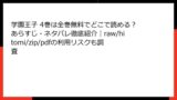 - raw系サイト:スキャンされた生の漫画データを公開。日本語のまま提供されるが、違法アップロード元であることが多く、アクセスするだけでマルウェア感染のリスクが。画質が低く、ページが欠けることも。