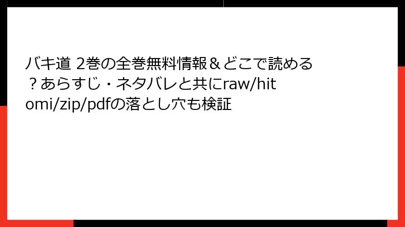 raw/hitomi/zip/pdf/漫画バンクなどの海賊版サイトは、法的罰則、ウイルス感染、経済・倫理的損失の三重苦。2025年のデジタル環境では、正規電子書籍サービス(無料トライアルやセール満載)が圧倒的に優位です。『バキ道』の熱いバトルを、安心して楽しむために、今日から合法ルートを選びましょう! リスクゼロでワクワクが続く漫画ライフ、きっと最高ですよ。皆さんの体験談やおすすめ正規サイトのコメント、待ってます。次回もお楽しみに!