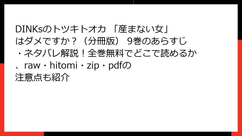 DINKsのトツキトオカ 「産まない女」はダメですか?(分冊版) 9巻のあらすじ・ネタバレ解説!全巻無料でどこで読めるか、raw・hitomi・zip・pdfの注意点も紹介