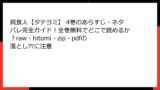 | 漫画バンク (後継: HAKARAW, MANGA ZIP) | 人気作のリンク集、更新速い | ドメイン変更の不安定さ、個人情報収集 |