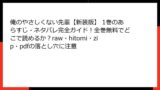 | zip/pdf | 圧縮ファイル形式でオフライン保存可能。全巻一括ダウンロード向き。 | ファイル開封時のウイルス感染率高く、トレースしにくい。 |