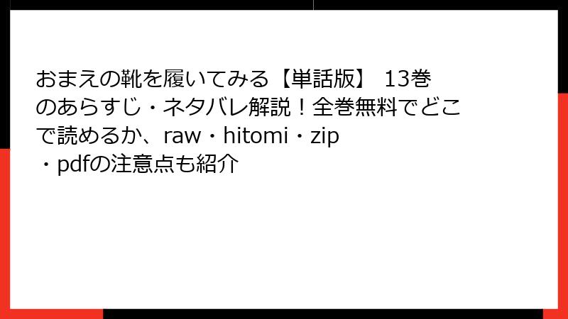 『おまえの靴を履いてみる【単話版】 13巻』は、感動と緊張感が交錯する傑作エピソード。口コミでは「泣ける」「尊い」が大多数を占める一方、シリアスな展開に戸惑う声も。総合評価は星4.5/5で、BLファンなら必読の一冊です。Xやレビューサイトの熱い反応を見ると、キヨと律の物語はまだまだ多くの人を魅了しそう。あなたはどのシーンに心を奪われた? コメントで教えてね! 次回は14巻のレビューでまたお会いしましょう。安全な正規プラットフォームで、素敵な読書タイムを!