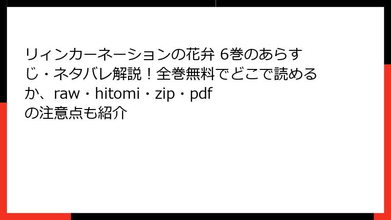 raw/hitomi/zip/pdf/漫画バンクなどの海賊版サイトは、法的罰則、ウイルス感染、倫理的後悔の三重苦。2025年の今、取り締まり強化で「後悔の連続」が増えています。一時の便利さが、人生の損失を招くなんて本末転倒。代わりに、正規の電子書籍サービス(例: 7~10社の無料枠ローテーション)を選べば、リスクゼロで高品質な読書が可能。初月無料トライアルやセールで、無限に楽しめます。『リィンカーネーションの花弁』の世界を、安心して堪能しましょう! 皆さんの安全な漫画ライフを応援しています。コメントで「私はこうして正規で読んでるよ」とシェアしてくださいね。次回もお楽しみに!