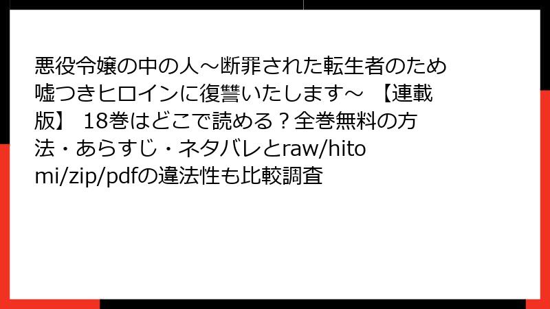 こんにちは、マンガ大好きブロガーのあかりです! 今回は、2025年10月現在も熱狂的なファンを魅了し続ける『悪役令嬢の中の人~断罪された転生者のため嘘つきヒロインに復讐いたします~ 【連載版】』の18巻について、ネタバレ全開で詳しく解説します。この巻は、復讐劇がさらに加速し、王宮の陰謀やキャラクターたちの心理戦がクライマックスを迎える激アツ展開! 物語の核心に迫る重大なネタバレを含むので、未読の方はご注意ください。18巻の重要シーンを、