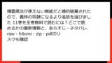 - 注意点:一部サービスで巻ごとの配信タイミングが異なる場合あり。最新巻(13巻)は2024年秋以降のリリースで、ほぼ全サービスで入手可能。
