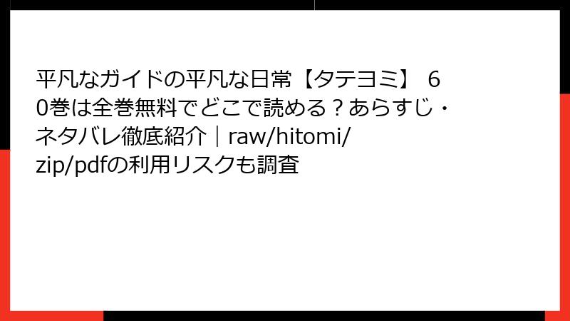 平凡なガイドの平凡な日常【タテヨミ】 60巻は全巻無料でどこで読める?あらすじ・ネタバレ徹底紹介|raw/hitomi/zip/pdfの利用リスクも調査