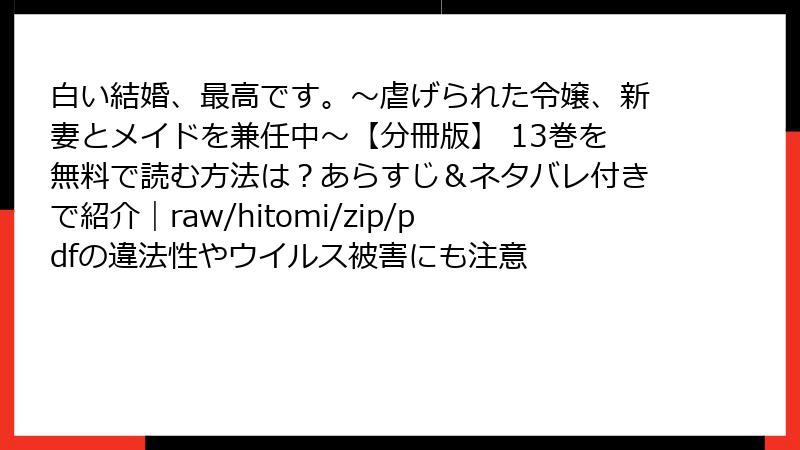 - 『白い結婚、最高です。〜虐げられた令嬢、新妻とメイドを兼任中〜【分冊版】 13巻』 レビュー・口コミ・評判を徹底分析:ファンが熱狂する理由とは?