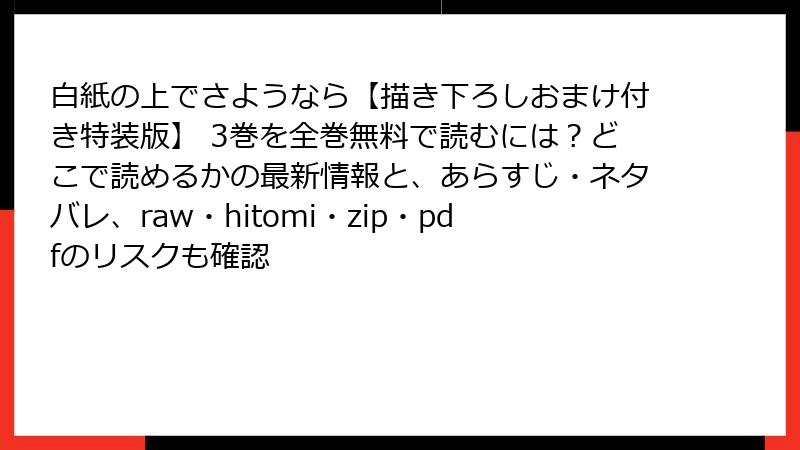 白紙の上でさようなら 3巻:描き下ろしおまけ付き特装版の魅力に迫る