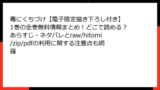 - ダウンロードの罰則:1作品あたり最大2年以下の懲役または200万円以下の罰金。rawやzipファイルのダウンロードは特に狙われやすい。