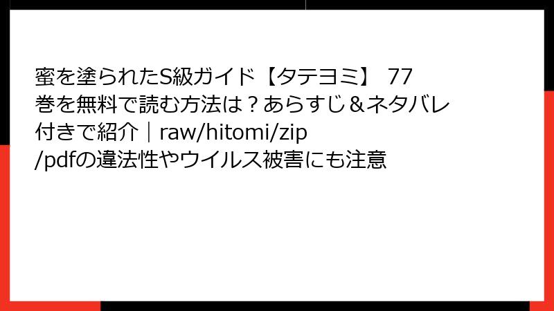 『蜜を塗られたS級ガイド【タテヨミ】』は、コミックシーモアを起点にRenta!、めちゃコミック、ピッコマ、LINEマンガで充実配信中。無料試し読みから始め、クーポン活用でコスパよく全巻制覇を! 未配信サービスは代替作品でつなぎつつ、2026年の拡大に期待。神堂新の再生ストーリーを、正規ルートで全力応援しましょう♪ 皆さんはどのサービス派? コメントで教えてくださいね。次回は78巻予想をお届け! それでは、甘い読書タイムを。