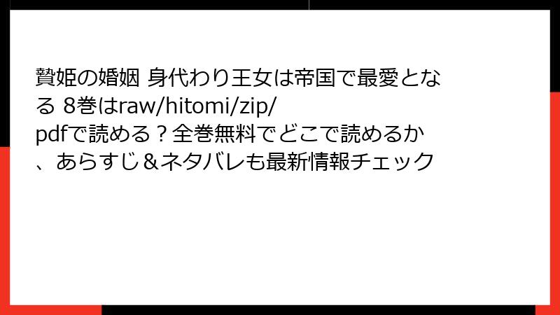皆さん、こんにちは! ロマンスと陰謀が織りなすタイムリープファンタジー『贄姫の婚姻 身代わり王女は帝国で最愛となる』の8巻が発売されてから、早くもファンの間で熱い議論を呼んでいます。この作品は、幽閉された王女ルーシャが冷徹帝リカルドとの婚姻を通じて運命を逆転していく物語。8巻では、物語が新たなクライマックスを迎え、ルーシャの過去と未来が交錯する感動の展開が満載です。今回は、ネタバレを含む詳細なあらすじを、ブログ形式でお届けします。まだ読んでいない方はご注意を! 読み応えを重視して、主要な章ごとに分けました。さあ、一緒に深掘りしていきましょう。