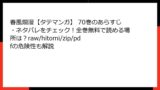 - 配信内容: 全巻配信。縦スクロール対応でスマホ読みやすい。