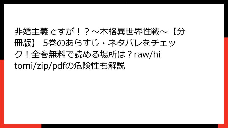 非婚主義ですが!?~本格異世界性戦~【分冊版】 5巻のあらすじ・ネタバレをチェック!全巻無料で読める場所は?raw/hitomi/zip/pdfの危険性も解説