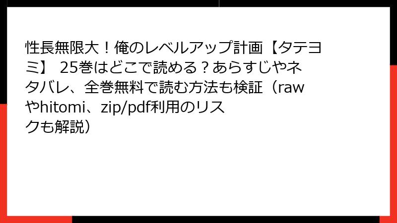 性長無限大!俺のレベルアップ計画を海賊版サイト(raw/hitomi/zip/pdf/漫画バンクなど)で読むリスク完全ガイド