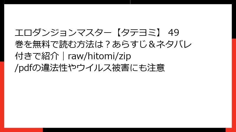 エロダンジョンマスター【タテヨミ】 49巻を無料で読む方法は?あらすじ&ネタバレ付きで紹介|raw/hitomi/zip/pdfの違法性やウイルス被害にも注意