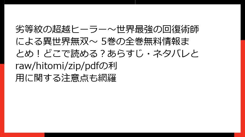 劣等紋の超越ヒーラー 5巻をraw・hitomi・漫画バンク・zip・pdf海賊版で読むとヤバい理由10選