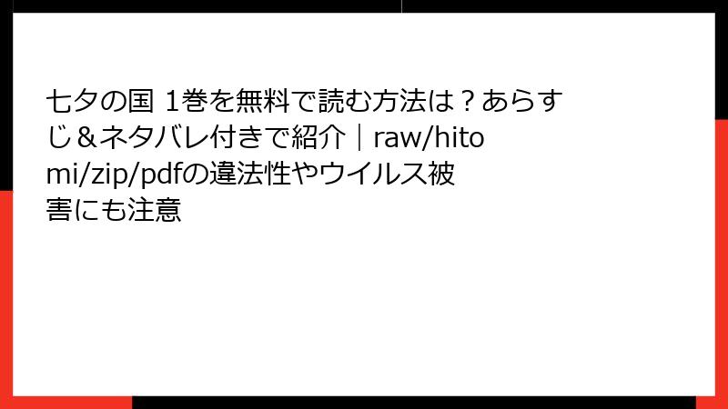 【警告】『七夕の国』をraw・hitomi・漫画バンクなどで読むと何が起こる? 海賊版サイトのリアルなリスク全解説