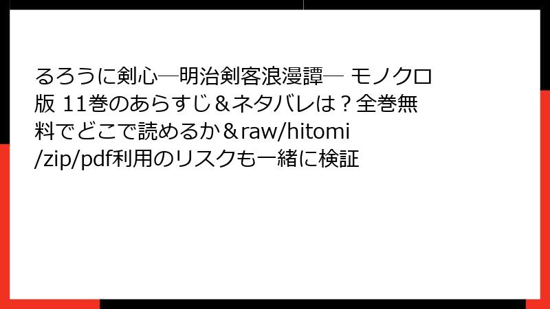 るろうに剣心―明治剣客浪漫譚― モノクロ版 11巻のあらすじ&ネタバレは?全巻無料でどこで読めるか&raw/hitomi/zip/pdf利用のリスクも一緒に検証
