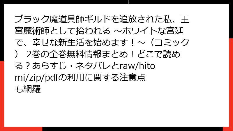 - 『ブラック魔道具師ギルドを追放された私、王宮魔術師として拾われる』2巻を海賊版サイトで読むリスク完全ガイド