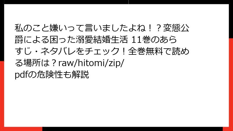 こんにちは、漫画大好きブロガーのあかりです! 今日は、ファンタジーロマンスの傑作として人気沸騰中の『私のこと嫌いって言いましたよね!?変態公爵による困った溺愛結婚生活』11巻のあらすじを、たっぷりネタバレ込みで深掘りしていきたいと思います。この作品は、政略結婚から始まる仮面夫婦のドタバタ溺愛ストーリーで、変態気味の公爵のギャップ萌えがたまらないんですよね。タイトル通りの「嫌いって言いましたよね!?」のセリフが象徴するように、冷徹な公爵が徐々に本性を現す展開が最高! 11巻では、そんな関係性がさらに深みを増して、心揺さぶられるエピソードが満載です。シリーズのファンなら必読ですよ。それでは、早速本題へ。