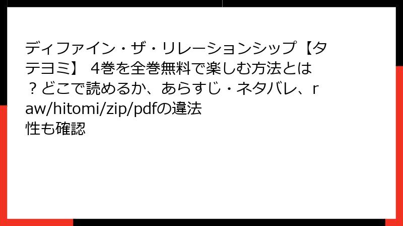 『ディファイン・ザ・リレーションシップ【タテヨミ】』をraw/hitomi/zip/pdf/漫画バンクで読むとヤバい!海賊版のリアルなリスク全暴露