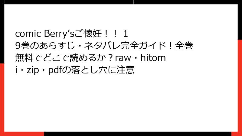 『comic Berry’sご懐妊!!』を海賊版(raw/hitomi/zip/pdf/漫画バンク等)で読むと、あなたのスマホ・PC・財布が全滅する本当のリスク