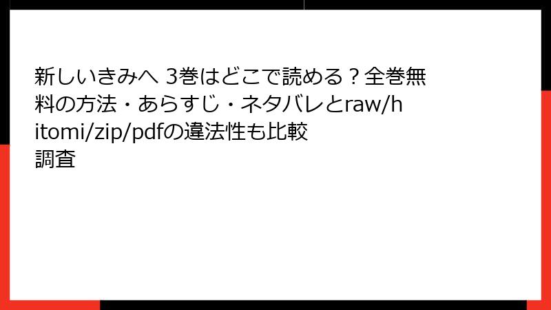 こんにちは、漫画好きブロガーのきみへです。『新しいきみへ』はタイムリープ×パンデミックの傑作ですが、「raw」「hitomi」「zip」「pdf」「漫画バンク」などの海賊版サイトで読もうとしていませんか? 無料で全巻読める誘惑は大きいですが、そこには“物語以上の恐怖”が潜んでいます。今日は、法的・技術的・倫理的な観点から、海賊版利用のリスクを徹底解説します。未読の方も、読了済みの方も、未来の自分を守るために読んでください。