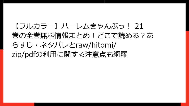 ※この記事は『【フルカラー】ハーレムきゃんぷっ! 21巻』の全編にわたる重大ネタバレを含みます。未読の方は閲覧を控えてください。すでに読破済みの方、あるいは「先に結末を知りたい!」という勇者向けに、ページごとの展開、キャラクターの心理、伏線回収まで徹底的に掘り下げます。フルカラーのビジュアル描写も交えながら、21巻の“真実”を暴いていきましょう。
