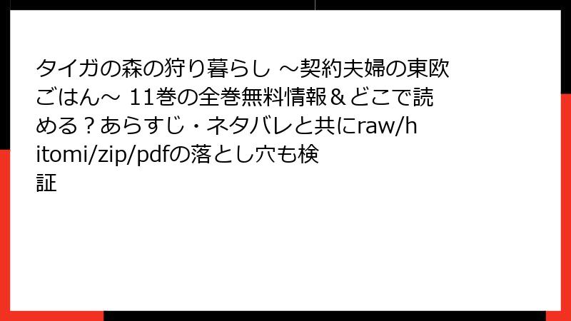 タイガの森の狩り暮らし ~契約夫婦の東欧ごはん~ 11巻の全巻無料情報&どこで読める?あらすじ・ネタバレと共にraw/hitomi/zip/pdfの落とし穴も検証