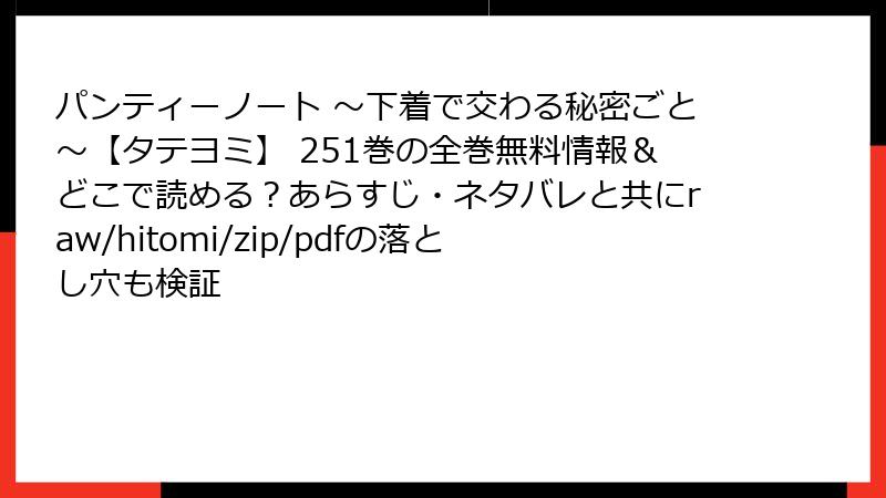 『パンティーノート』251巻をraw・hitomi・漫画バンクで読む? 知らなきゃ損する“5大リスク”完全解説