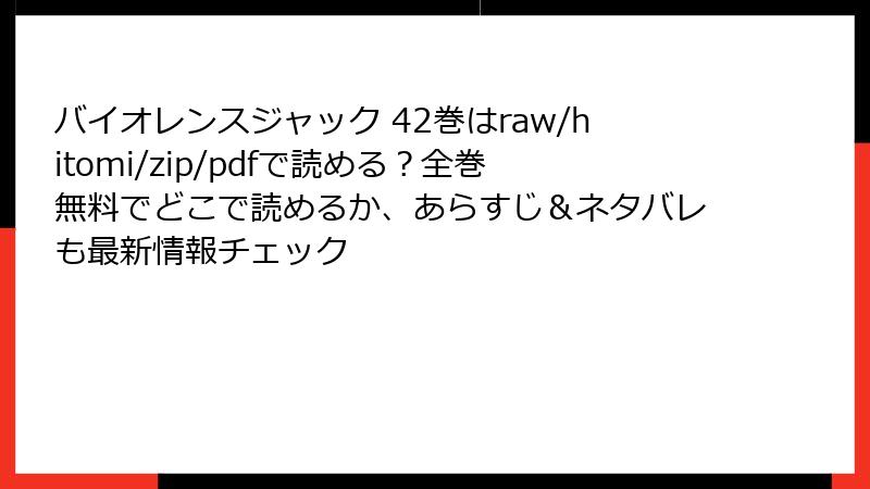 永井豪の金字塔『バイオレンスジャック』。42巻の衝撃的な正体バレに興奮して「今すぐ読みたい!」と思うのは当然だ。しかし、raw、hitomi、漫画バンク、zip、pdfなどの海賊版サイトで読むことは、あなたの人生を破壊しかねない。以下に、具体的なリスクを徹底解剖する。