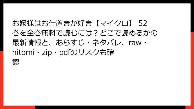 こんにちは! 電子書籍ハンターの漫画ブロガー、モモコです。もりなかもなか先生の人気シリーズ「お嬢様はお仕置きが好き【マイクロ】」52巻が発売されてから、ファンの皆さんから「どこで電子版読めるの?」「お得なサービス教えて!」という質問が殺到中。今回は、指定された人気サービス(コミックシーモア、ブックライブ (BookLive)、まんが王国、ebookjapan、Renta!、めちゃコミック (めちゃコミ)、ピッコマ、LINEマンガ)について、2025年11月12日時点の配信状況を詳しく調査・まとめました。小学館の作品なので、基本的に多くのプラットフォームで配信されていますが、独占や先行、無料特典に違いあり。読み応え満載の比較レビュー、参考にしてくださいね!