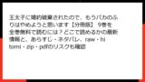 - rawの特徴: 生のスキャン画像を提供するサイトで、翻訳前の「生データ」が豊富ですが、サーバーダウンが頻発しイライラの連続。ダウンロード待ちの間にマルウェアが忍び寄るケースも。