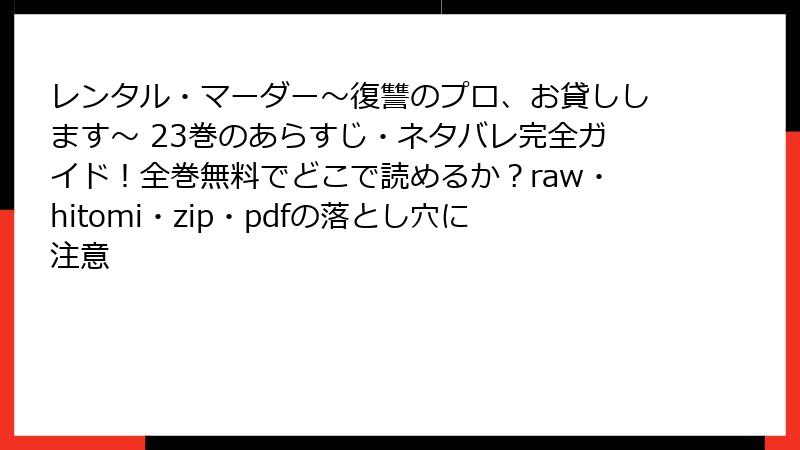 『レンタル・マーダー』をraw・hitomi・zip・pdf・漫画バンクで読むリスク大公開! 海賊版の罠にハマる前に知っておくべき全事実