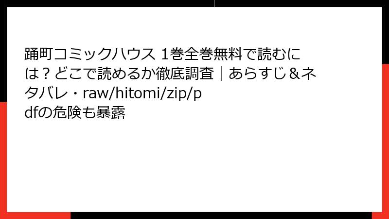 みなさん、こんにちは! 漫画好きのブロガー、マンガマニアです。『踊町コミックハウス』1巻のあらすじ&ネタバレで盛り上がってきましたが、今回はちょっと真面目なテーマ。無料で読めると噂の「raw」「hitomi」「zip」「pdf」「漫画バンク」などの海賊版サイトでこの作品を読むことのリスクを、ガッツリ詳しくお届けします。「無料ならいいじゃん」と思うかもしれませんが、実はとんでもない落とし穴だらけ! 法的・セキュリティ・倫理的な観点から、読み応えのあるブログ形式で深掘りしていきます。海賊版に手を出そうとしているあなた、ぜひ最後まで読んでくださいね。