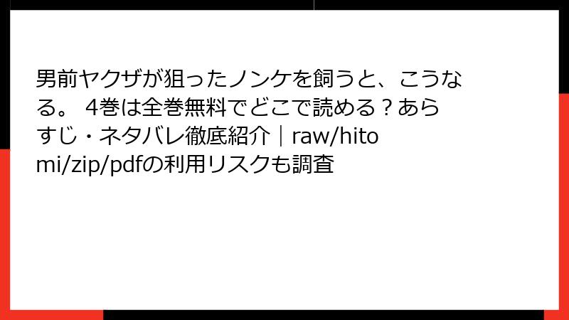 BLファンなら一度は耳にしたことがある「男前ヤクザが狙ったノンケを飼うと、こうなる。」。キサラ先生の甘々ヤクザBLは、電子書籍でも大人気ですが、「無料で全巻読みたい!」という衝動にかられて、raw、hitomi、zip、pdf、漫画バンクなどの海賊版サイトに手を出す人も少なくありません。でも、ちょっと待ってください! その“一瞬の快楽”の裏に潜むリスクは、想像以上に深刻です。この記事では、法的・セキュリティ・倫理的観点から、具体例を交えながら徹底的に解説します。読了後には「正規版で読むのが一番!」と心から思えるはずですよ。