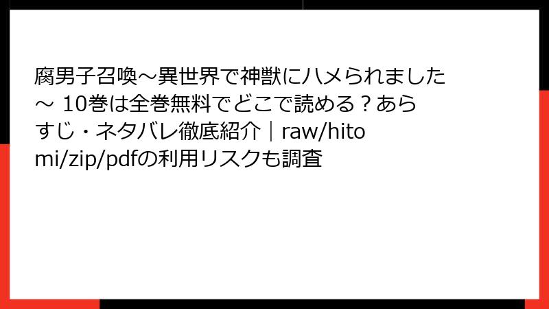 『腐男子召喚』を**raw・hitomi・漫画バンク・zip・pdf**で読むのは、**「無料の毒入りお菓子」**と同じ。**一瞬の快楽で、端末・プライバシー・推し作品・人生を失う**リスクが大きすぎます。