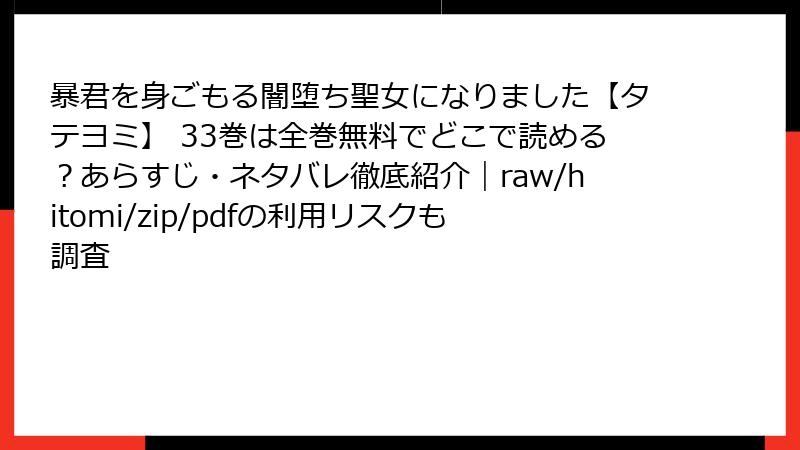 『暴君を身ごもる闇堕ち聖女になりました』をraw/hitomi/zip/pdf/漫画バンクで読むリスク:知らなきゃ損する完全ガイド