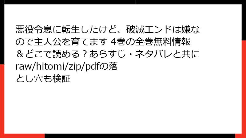 こんにちは、BLコミック愛好家の管理人です! 今回はいつもと趣向を変えて、**『悪役令息に転生したけど、破滅エンドは嫌なので主人公を育てます』**を**raw、hitomi、zip、pdf、漫画バンク**などの海賊版サイトで読むことの**リアルなリスク**を、ガッツリ掘り下げます。