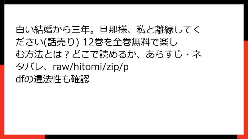 白い結婚から三年。旦那様、私と離縁してください(話売り) 12巻を全巻無料で楽しむ方法とは?どこで読めるか、あらすじ・ネタバレ、raw/hitomi/zip/pdfの違法性も確認