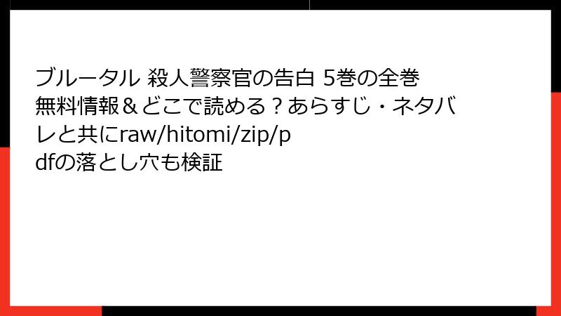 ブルータル 殺人警察官の告白 5巻の全巻無料情報&どこで読める?あらすじ・ネタバレと共にraw/hitomi/zip/pdfの落とし穴も検証