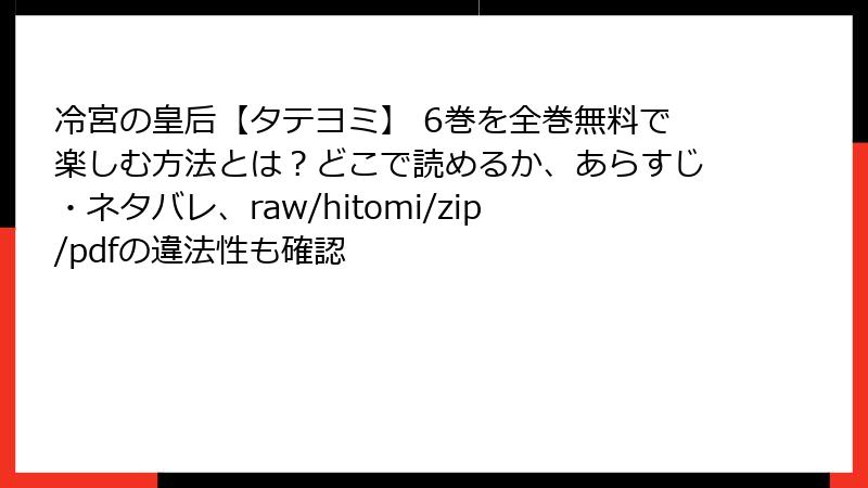 どうも、マンガを合法で楽しむブロガーです。『冷宮の皇后【タテヨミ】』6巻のネタバレを読み終えたあなた、今すぐ「raw」「hitomi」「zip」「pdf」「漫画バンク」などで無料で読もうとしていませんか? ちょっと待ってください。確かに“無料”は魅力的ですが、その裏には人生を台無しにするレベルのリスクが潜んでいます。今回は、実際に被害を受けた読者の事例を交えながら、5つの観点から徹底警告します。読了時間は約5分。あなたのスマホと財布、そして未来を守るために、最後までスクロールしてください。