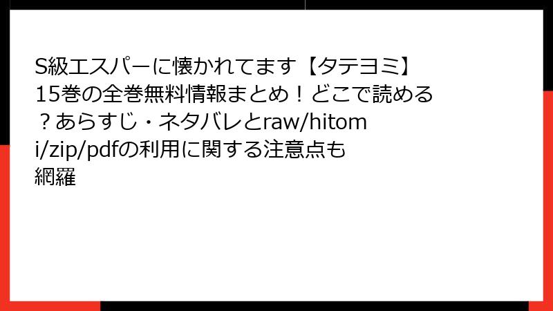 こんにちは、マンガ愛好家の皆さん! 『S級エスパーに懐かれてます』の15巻が熱い中、ついつい「raw」「hitomi」「zip」「pdf」「漫画バンク」などのキーワードで検索しちゃう気持ち、わかります。でも待って! その一歩が、あなたのスマホ・PC、そして作者の未来を破壊しかねません。今日は、海賊版サイトのリアルなリスクを、データと事例を交えてガッツリ解説。エマの心の声が聞こえる世界でも、海賊版の「悪意」は確実に聞こえてきますよ(笑)。未読のまま正規版を待つのが一番のファン行為です!