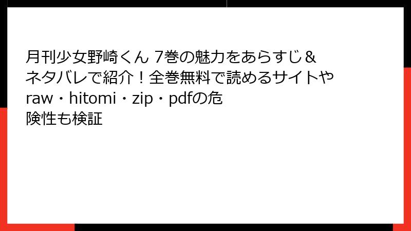 『月刊少女野崎くん』を海賊版サイト(raw/hitomi/zip/pdf/漫画バンクなど)で読む本当のリスク:知らずに踏み込む危険な罠